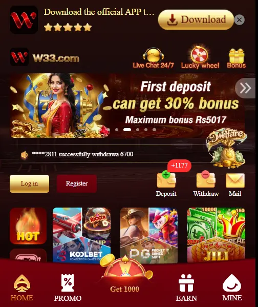 W33 Game supports local payment methods such as Easypaisa and JazzCash, making it easier for users in Pakistan to deposit and withdraw funds.